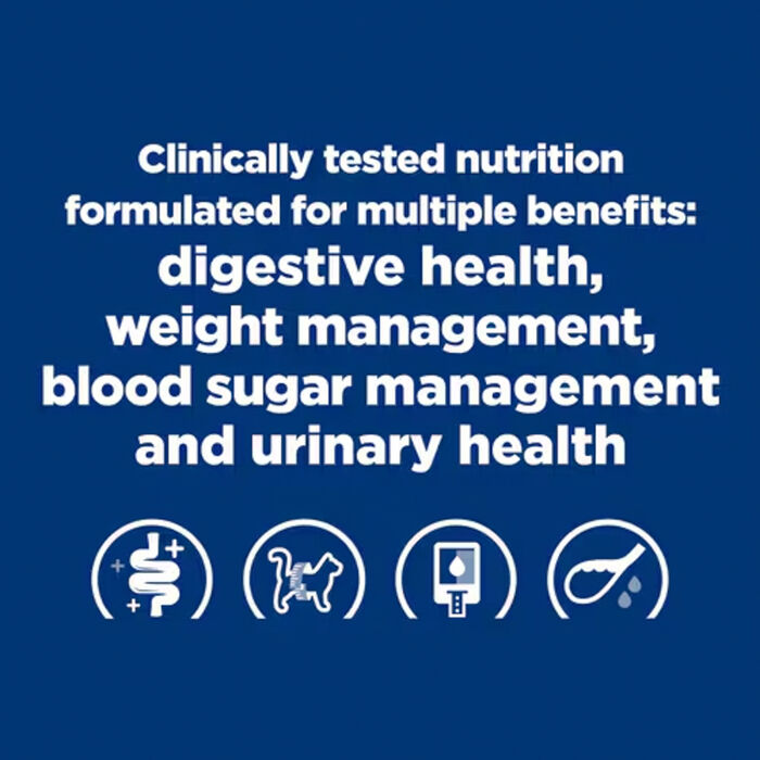 Hill's Prescription Diet w/d is clinical nutrition specially formulated to benefit your pet on multiple levels: urinary health, digestive health, blood sugar management and weight management.