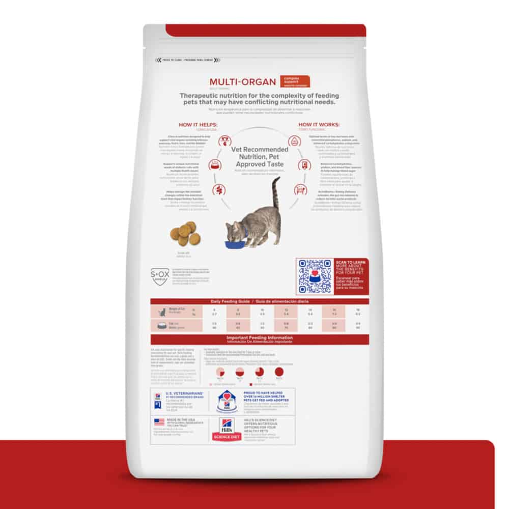 - Hill’s Prescription Diet is the #1 US Vet Recommended therapeutic pet food — consult with your vet to make sure Prescription Diet Multi-Organ is the right food for your cat