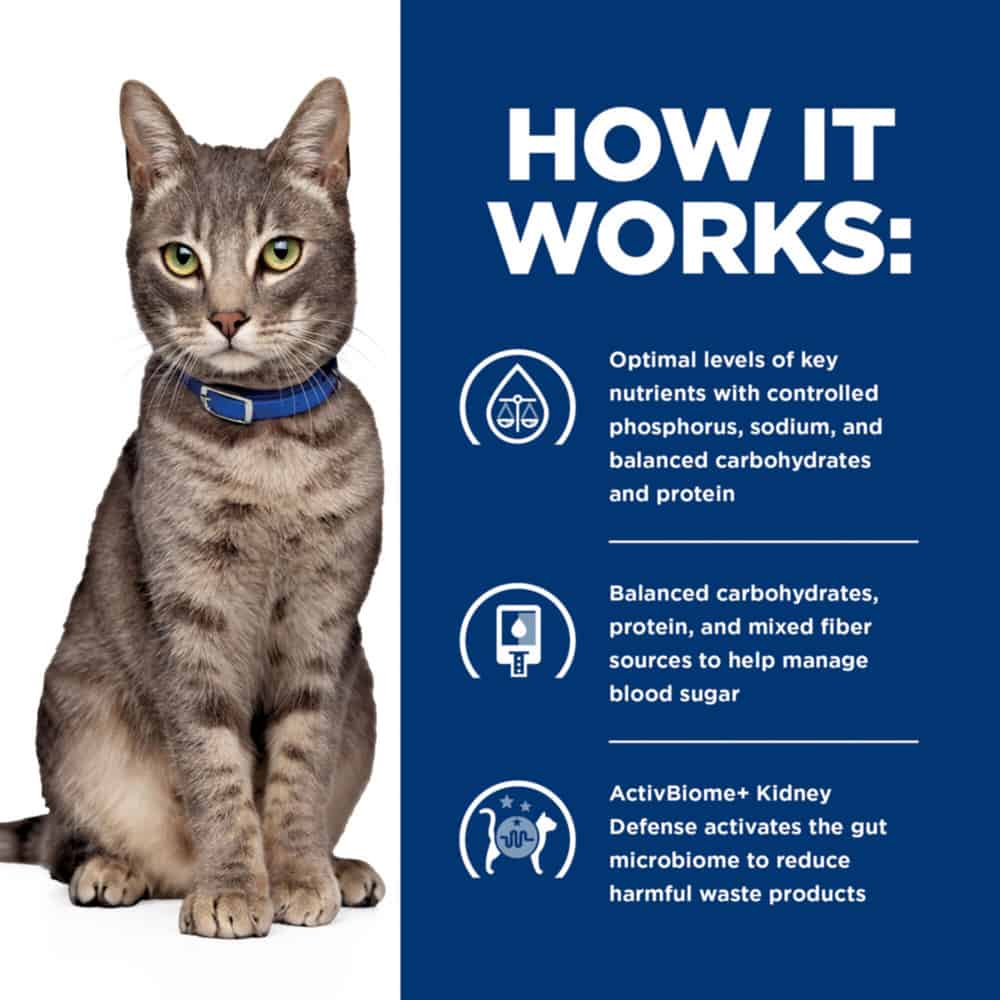 - Hill's Prescription Diet Multi-Organ Chicken Wet Cat Food is specially formulated by Hill’s nutritionists and veterinarians to support unique nutritional needs of diabetic cats with multiple health issues
