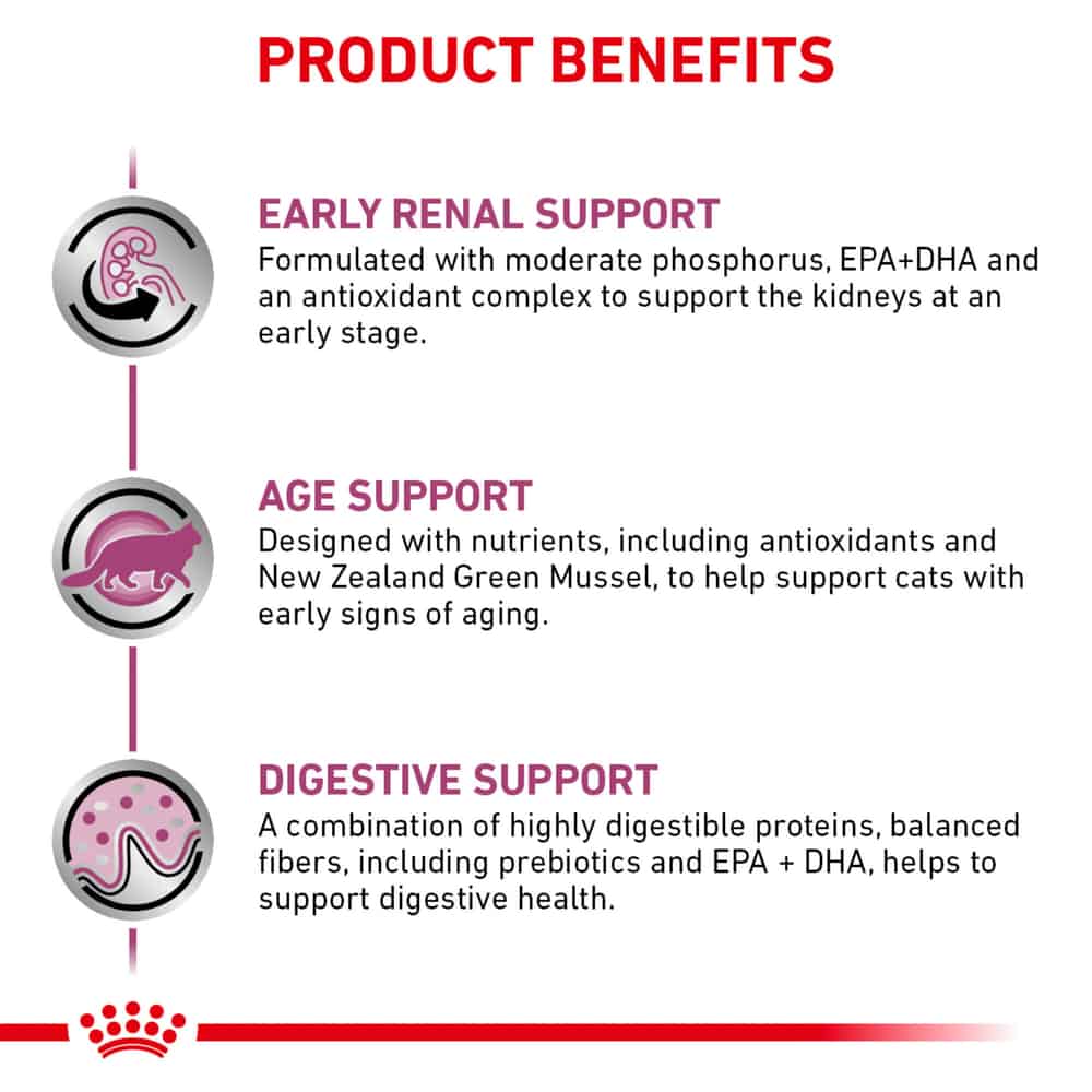 - SUPPORTS KIDNEY HEALTH: Royal Canin Veterinary Diet Feline Renal Support Early Consult is a veterinary-exclusive dry cat food to help support kidney health
