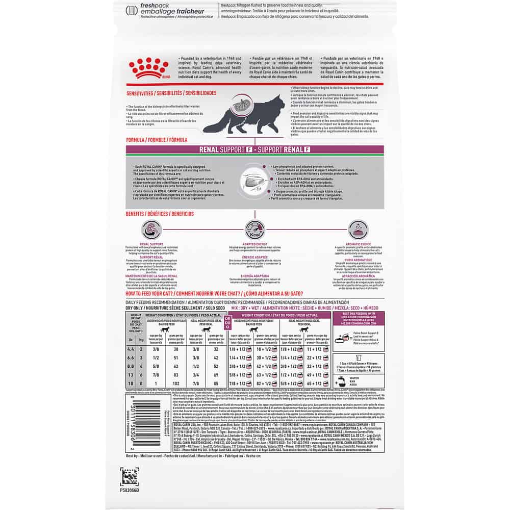 - SUPPORTS KIDNEY HEALTH: Royal Canin Veterinary Diet Renal Support F is a veterinary-exclusive dry cat food to support cat kidney health