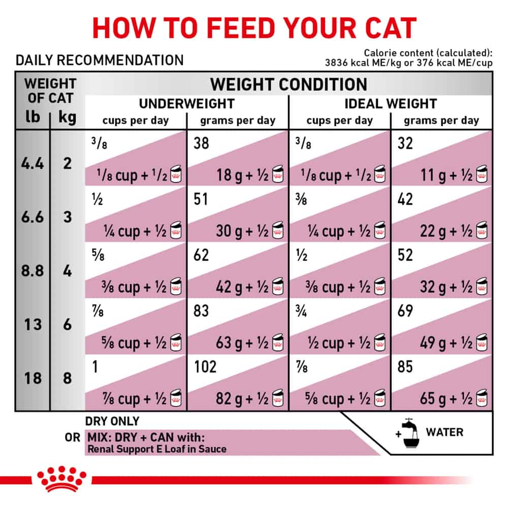 - When feeding Dry + Wet, this food is best mixed with Royal Canin Veterinary Diet Feline Renal Support E Loaf in Sauce Canned Wet Cat Food.