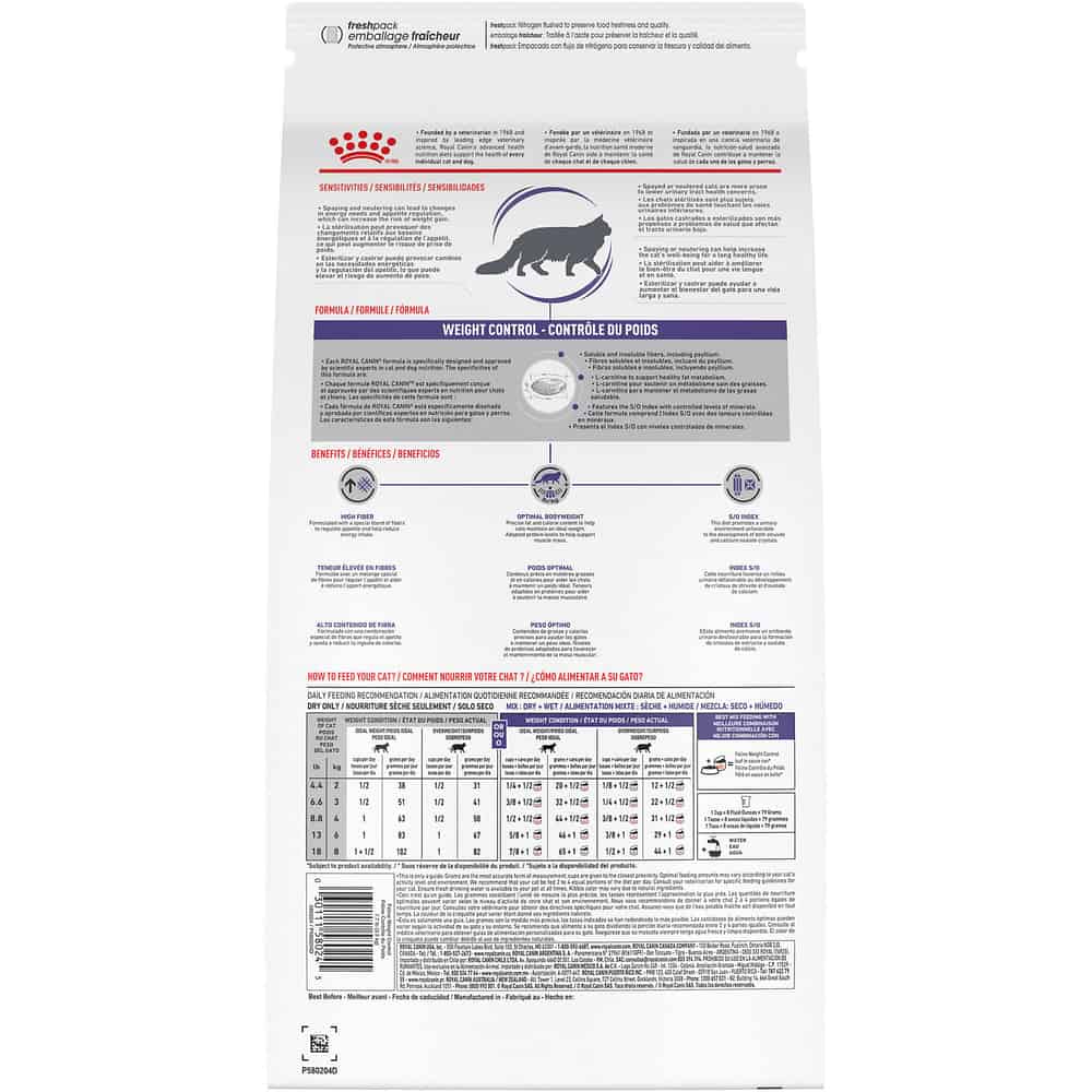 Royal Canin Veterinary Diet Feline Weight Control Dry Cat Food Directions:
