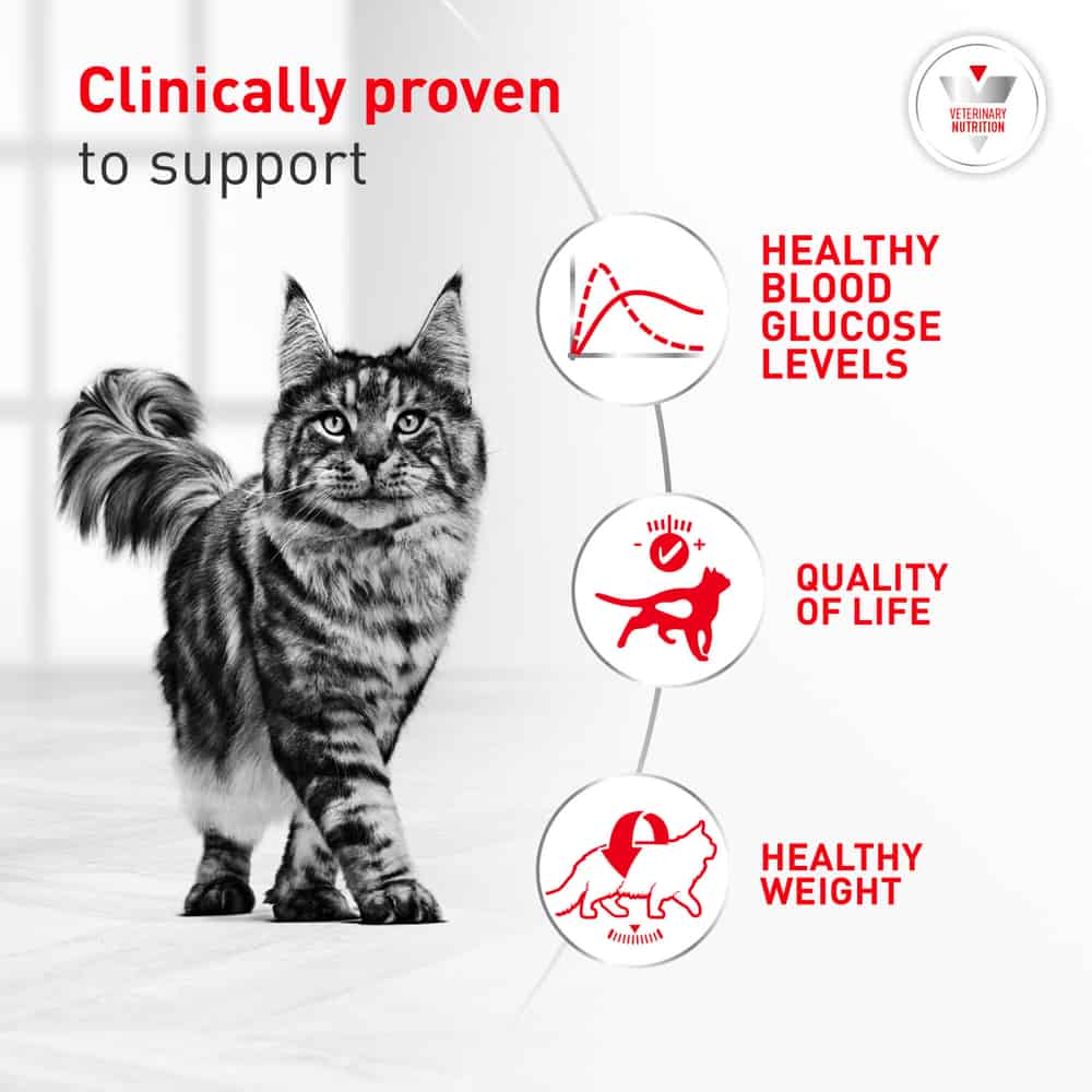 - Increased nutrient-to-calorie ratio supports safe weight loss and healthy weight maintenance for diabetic cats.