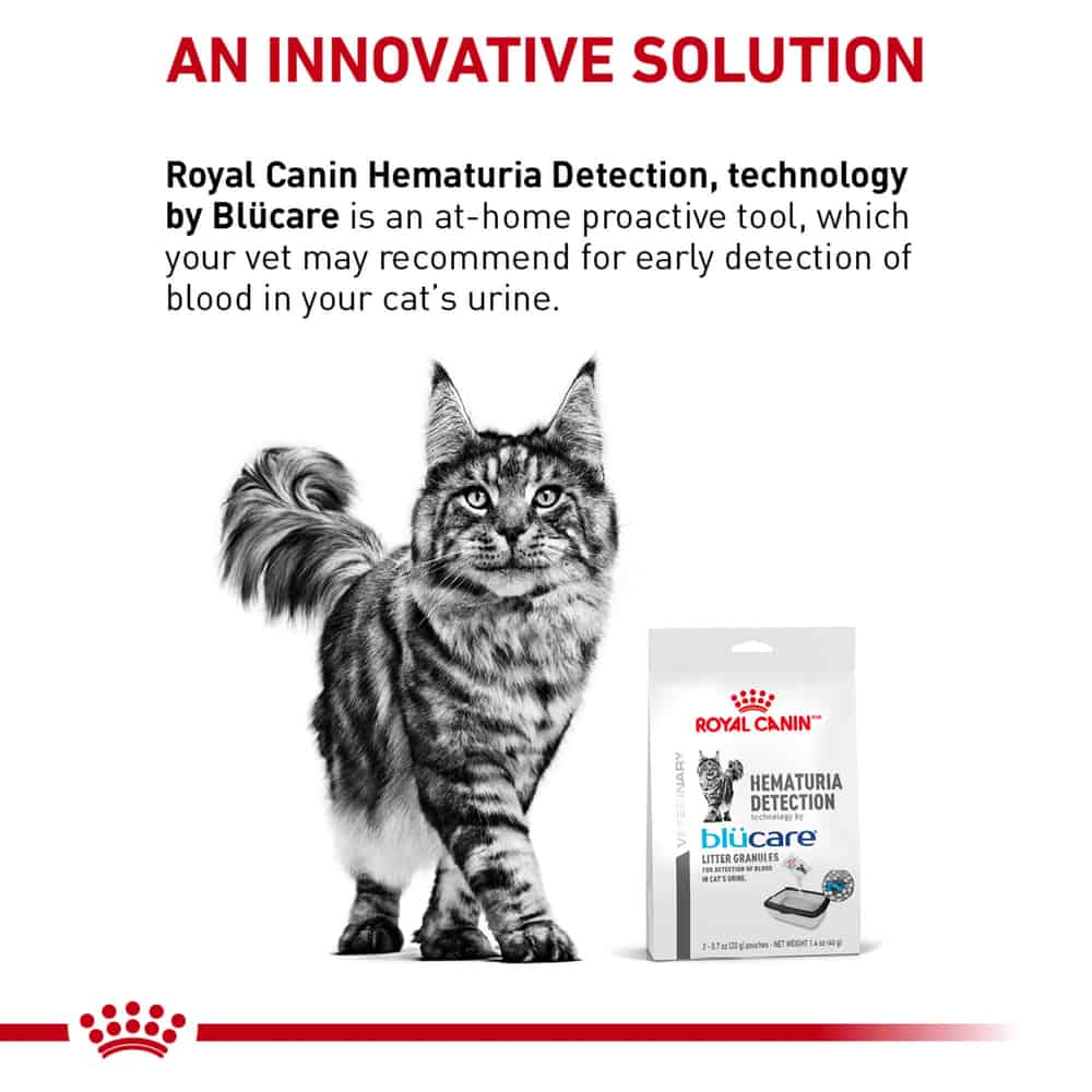 • INNOVATIVE AT-HOME TEST: Royal Canin Hematuria Detection, Technology by Blücare, is an innovative at-home test that detects hematuria, which is blood in the urine