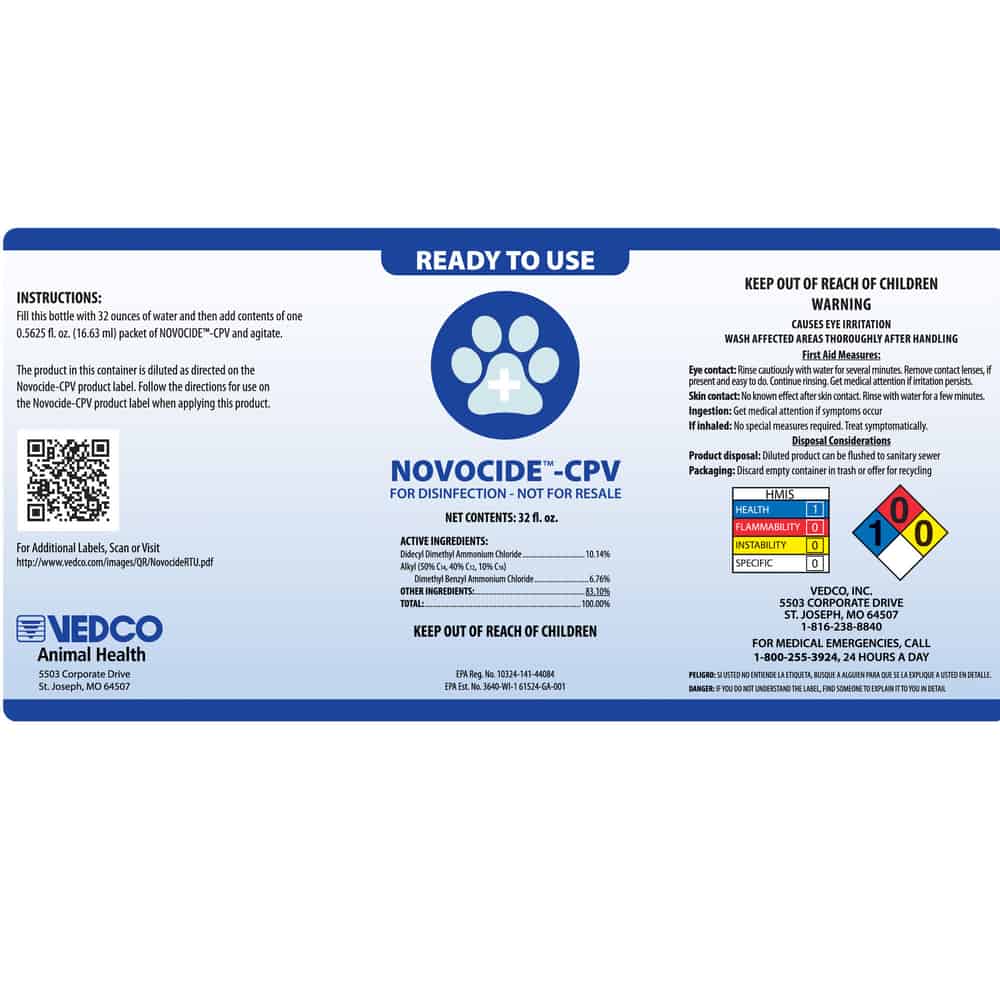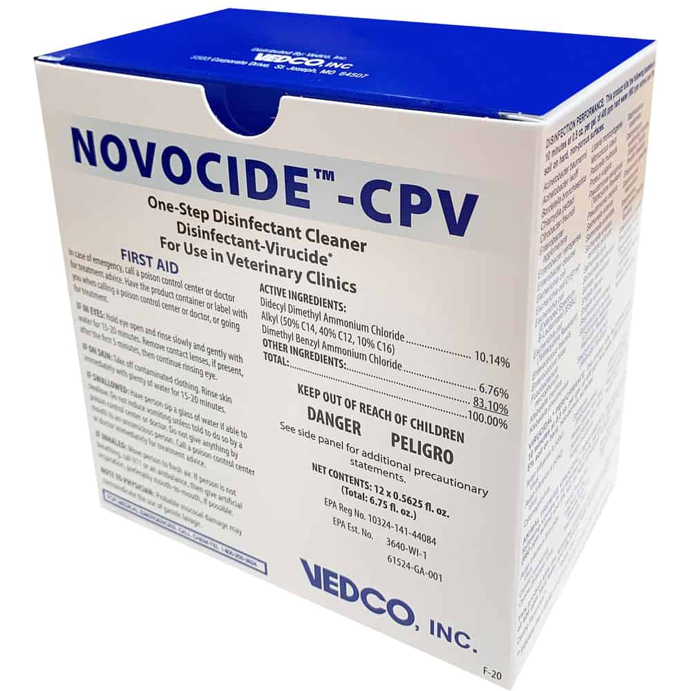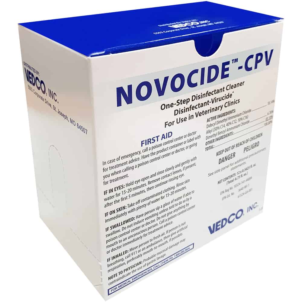 NOVOCIDE™ CPV is a One-Step Disinfectant Cleaner Disinfectant-Virucide* For Use in Veterinary Clinics.