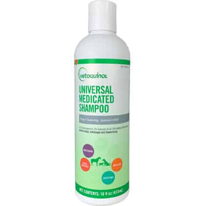 The deep cleansing action of Universal Medicated Shampoo helps to remove scales and crusts from your pet's skin. It is antibacterial and antifungal, so it is effective against bacteria and fungus that can cause infections. The deodorizing formula helps fight odors. Universal Medicated Shampoo is gentle enough for routine use.