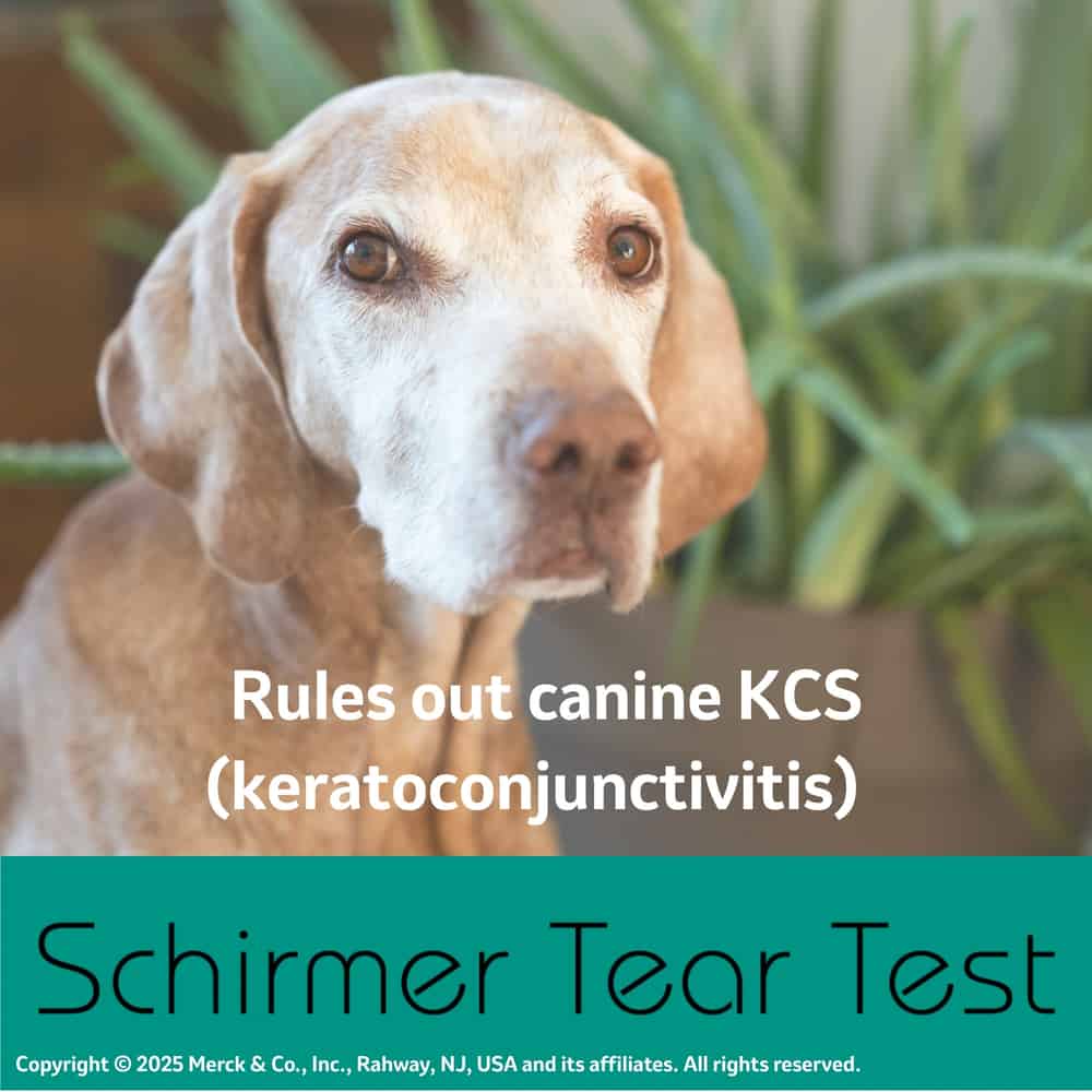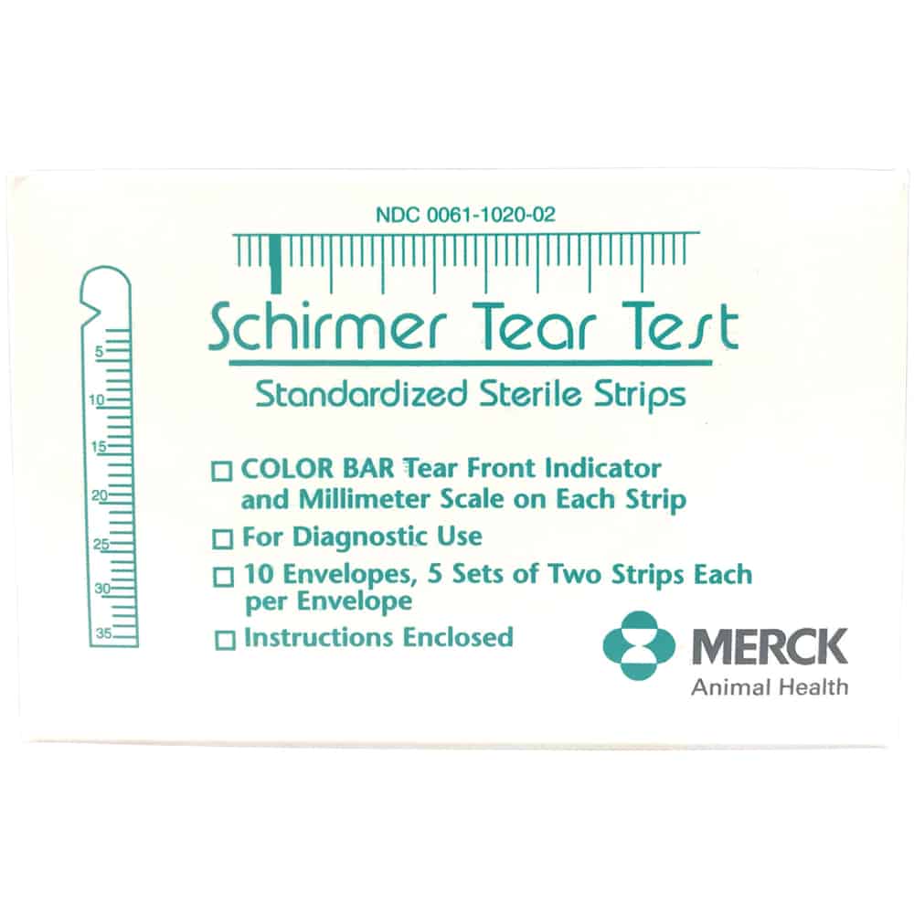 The Schirmer Tear Test (STT) is used to measure the rate of tear production in animals. It can be used to diagnose tear deficiency as a contributing factor to ocular (eye) surface diseases, such as Keratoconjunctivitis sicca (KCS), pigmentary keratitis, indolent corneal ulcers, exposure keratitis, and more. It can also be used to assess lacrimal gland function before cataract surgery. Each standardized sterile strip has a color bar tear front indicator and a millimeter scale (up to 35 mm). One package of Schirmer Tear Test contains 5 sets of two strips (one for the left eye and one for the right eye).