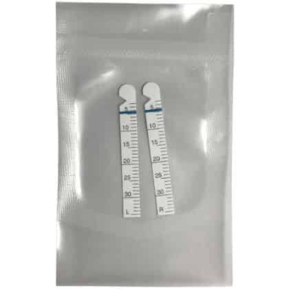 - After 60 seconds has passed, immediately measure the length of the moistened area on the strip.