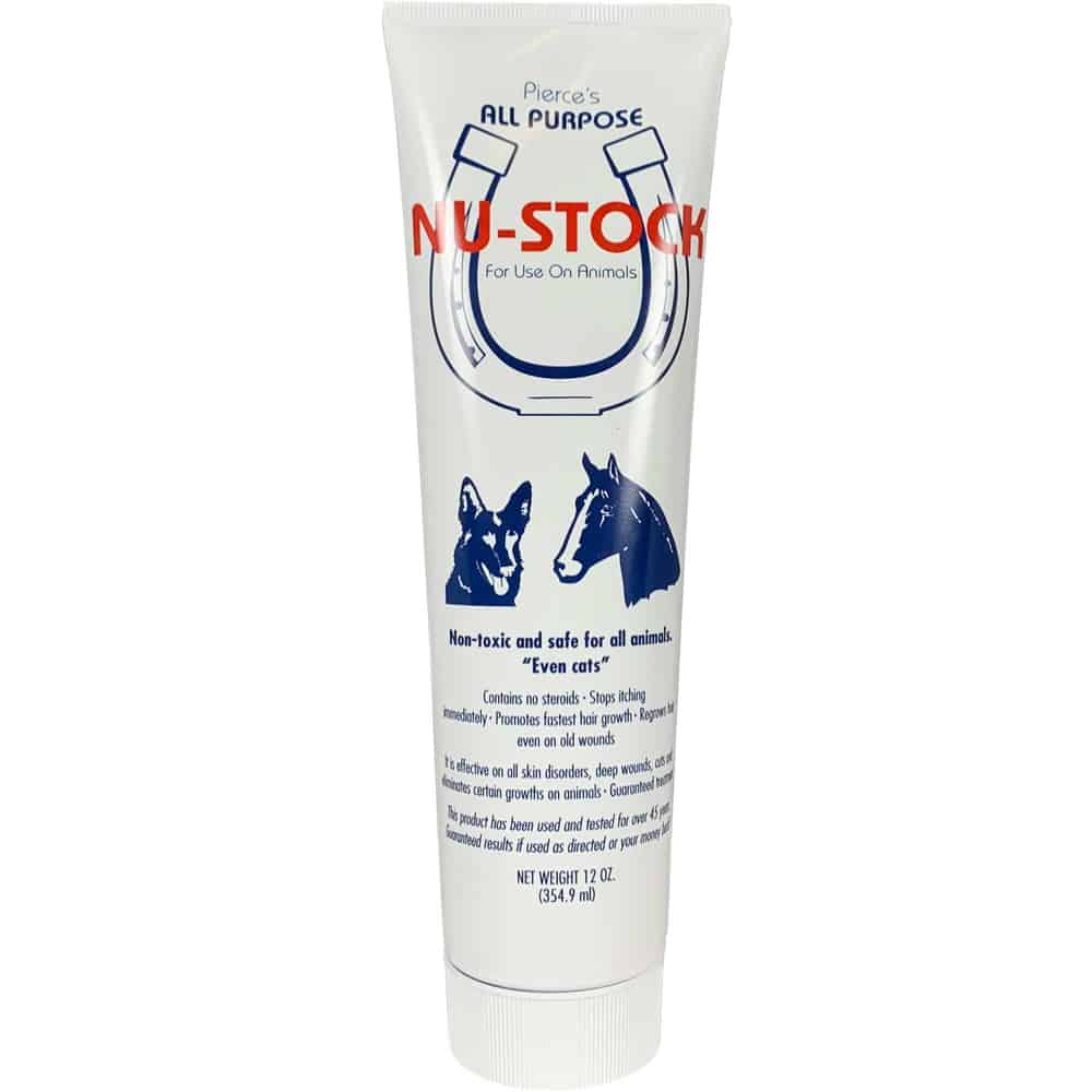 Nu-Stock Topical Ointment is an all-purpose topical treatment proven to be effective for fast relief of all types of skin problems. Nu-Stock Topical Ointment also helps to eliminate certain types of growths on animals. It contains no steroids. Stops itching immediately and promotes fastest hair growth. Regrows hair, even on old wounds. Effective on all skin disorders, deep wounds, and cuts on animals.