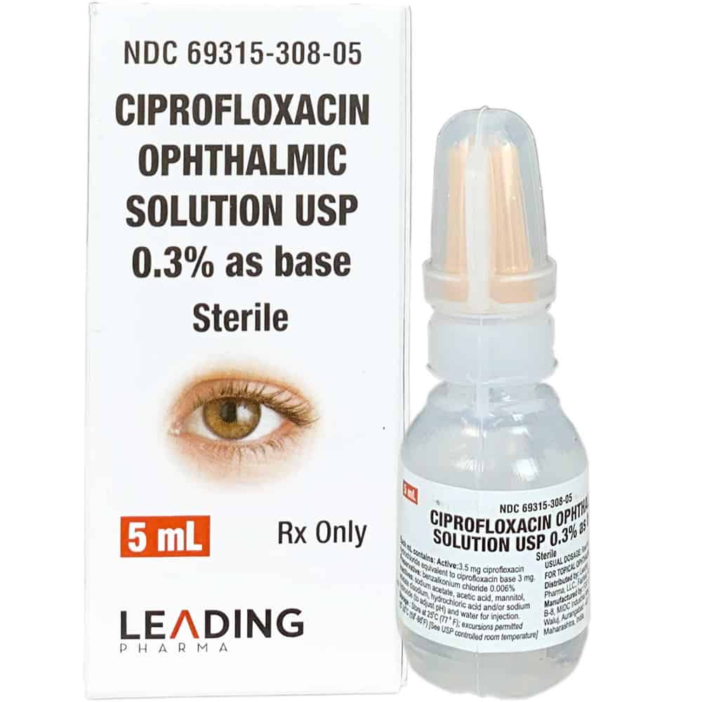 Ciprofloxacin Hydrochloride Ophthalmic Solution 0.3% is a topical prescription antibiotic medication used to treat a wide variety of ophthalmic bacterial infections. Ciprofloxacin has been shown to be active against gram-positive microorganisms including Staphylococcus aureus, Staphylococcus epidermidis, Streptococcus pneumoniae, and Streptococcus (Viridans Group). Ciprofloxacin has been shown to be active against gram-negative microorganisms including Haemophilus influenzae, Pseudomonas aeruginosa, and Serratia marcescens. It is indicated in the treatment of external infections of the eye, such as conjunctivitis, corneal ulcer, blepharitis, keratitis, and other susceptible bacterial infections.