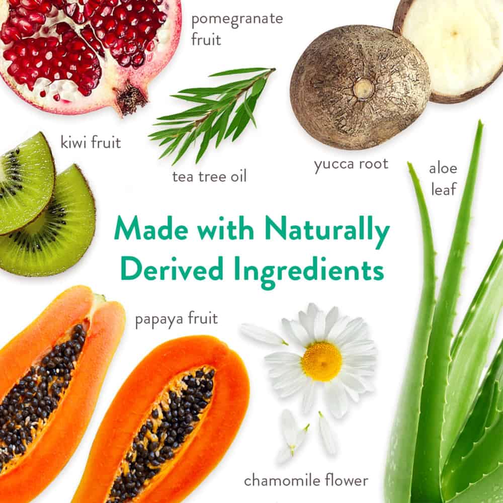 | Purified Water, Mild Coconut Cleanser, Sodium Chloride, Colloidal Oatmeal, Hydrolyzed Wheat Protein, Tea Tree Oil, Botanical Blend Of (Chamomile Extract, Aloe Extract, Pomegranate Extract, Kiwi Extract, Yucca Extract, Papaya Extract), Beta Hydroxy, Propylene Glycol, Vitamin E, Fragrance, Preservative |