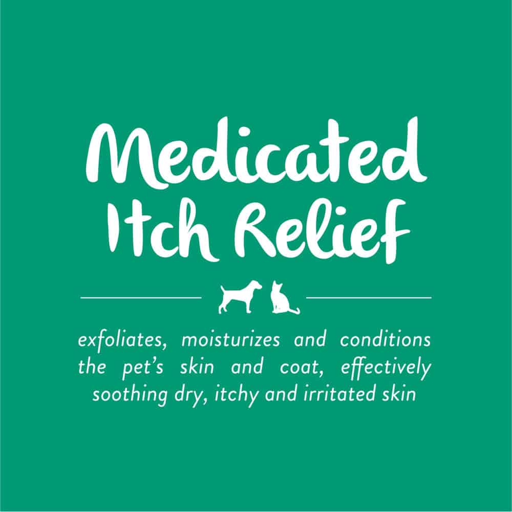 TropiClean Oatmeal & Tea Tree Medicated Itch Relief Dog & Cat Shampoo exfoliates, moisturizes and conditions you pet’s skin and coat, effectively soothing dry, itchy and irritated skin. The medicated formula is enhanced with beta hydroxy to help provide long lasting itch relief. TropiClean Pet Products are cruelty free