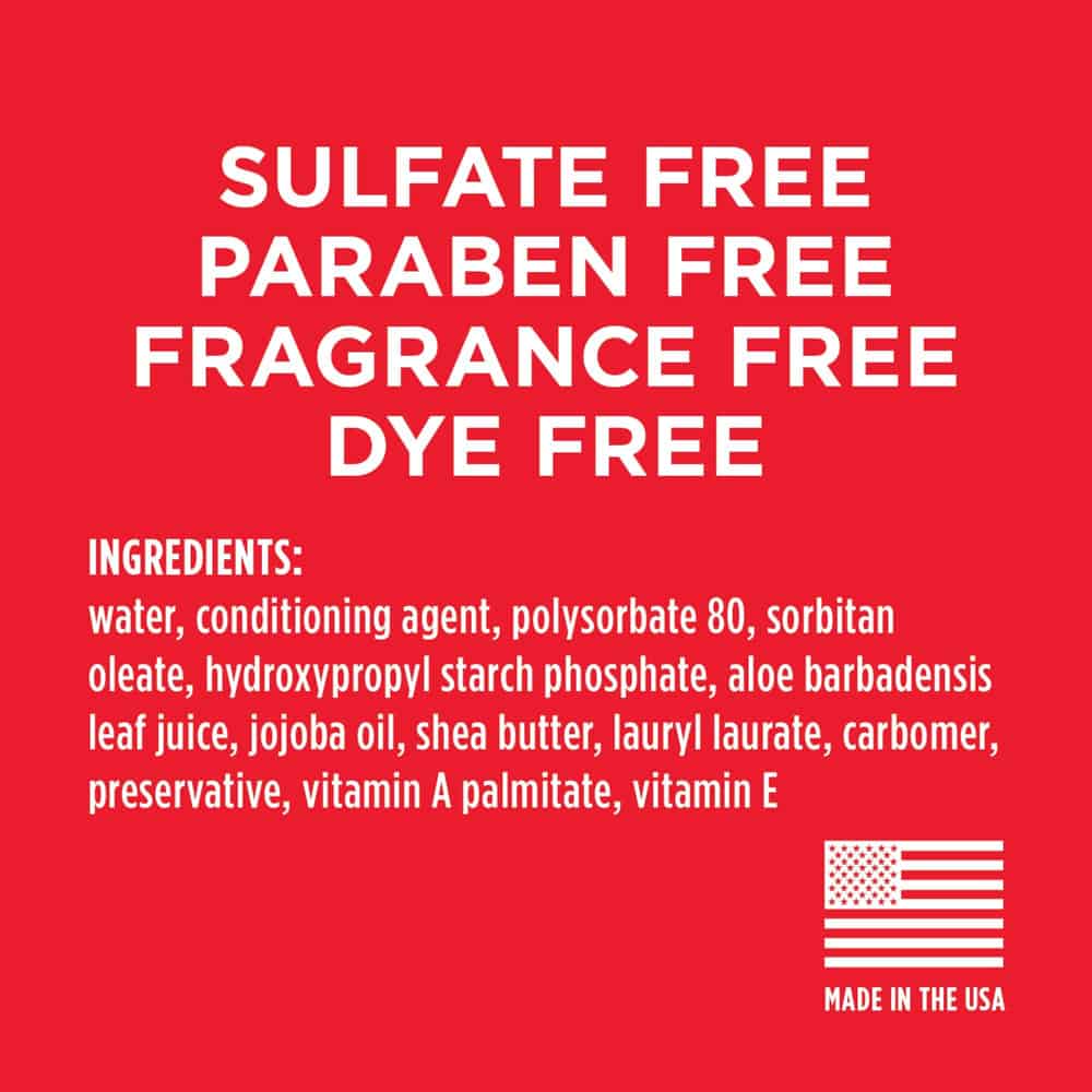 | Active Ingredients: Water, conditioning agent, polysorbate 80, sorbitan oleate, hydroxypropyl starch phosphate, aloe barbadensis leaf juice, jojoba oil, shea butter, lauryl laurate, carbomer, preservative, vitamin A palmitate, vitamin E |