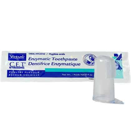 - Comes with a trial size of C.E.T. Enzymatic Toothpaste in a poultry flavor pets love