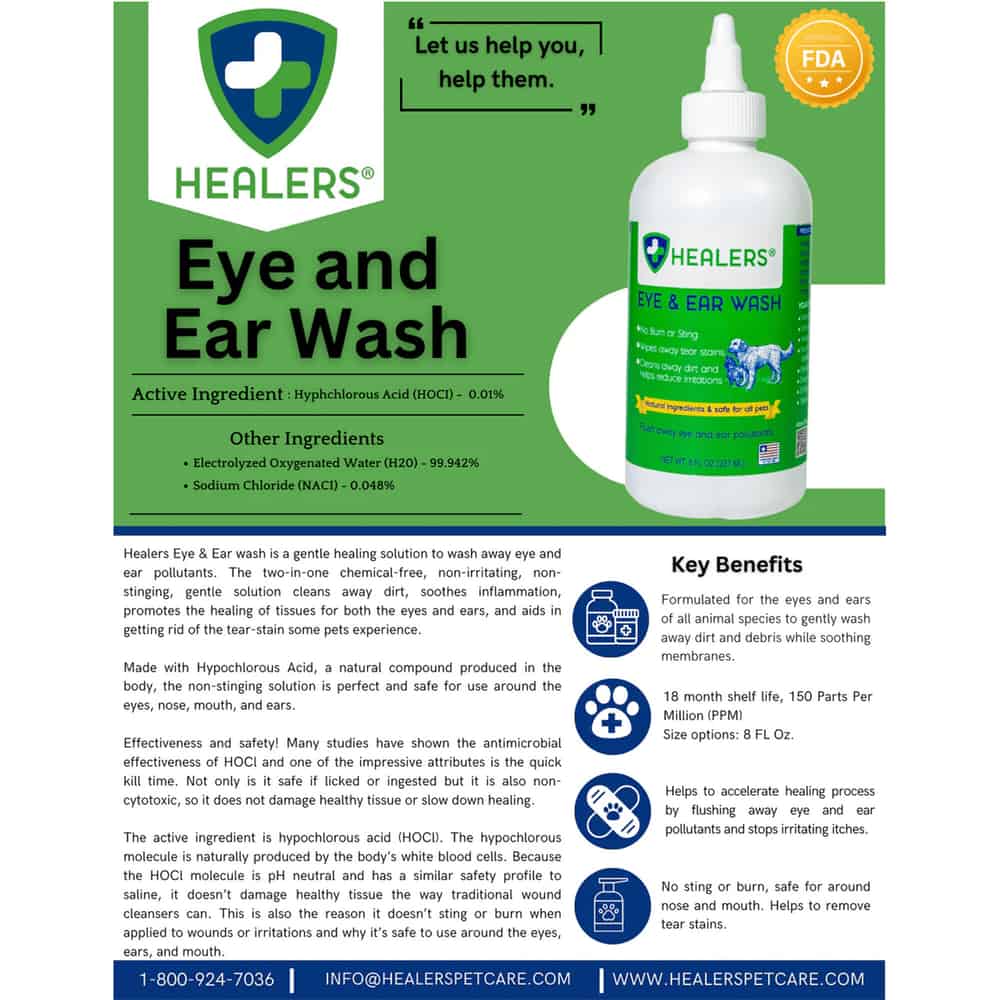 Healers Ear and Eye Wash Solution for Dogs and Cats Ingredients:
