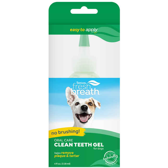 TropiClean Fresh Breath Clean Teeth Oral Care Gel is a "no-brush" teeth gel that works immediately to address plaque and tartar on your pet's teeth. TropiClean Fresh Breath Clean Teeth Oral Care Gel is made with all natural ingredients to help fight gum disease and promote periodontal wellness. It contains natural spearmint to help freshen breath, and helps to soothe minor gum irritations. The narrow tip helps you apply the TropiClean Fresh Breath Clean Teeth Oral Care Gel to hard-to-reach places so you never have to use your finger or even a toothbrush. See results in as little as 30 days!