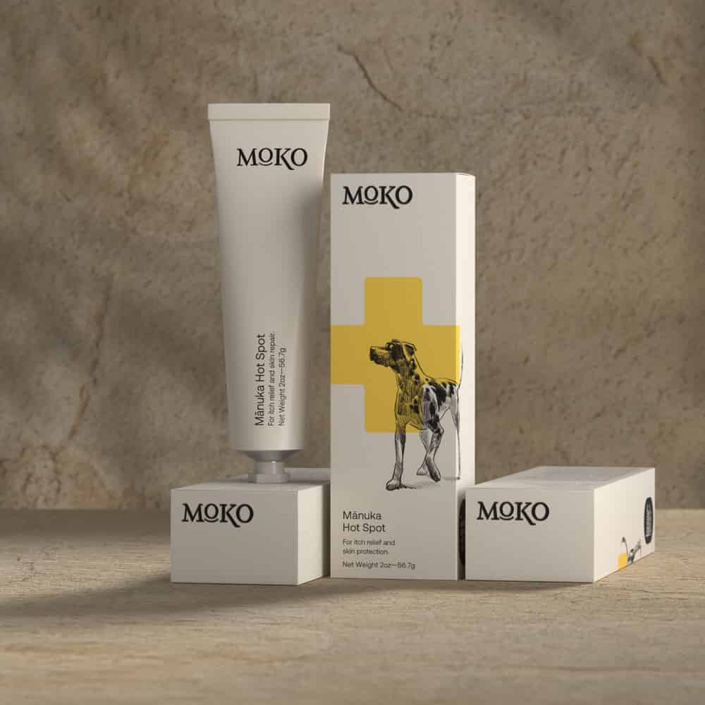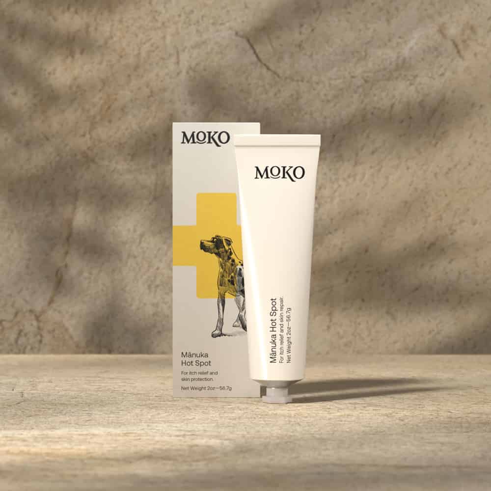 Moko Hot Spot is a vet dermatologist-backed solution, formulated to specifically target and treat common skin issues, including painful hotspots. Our natural ointment harnesses the power of medical grade Manuka honey and a proprietary blend of occlusives and humectants to soothe and repair your dog's distressed skin.