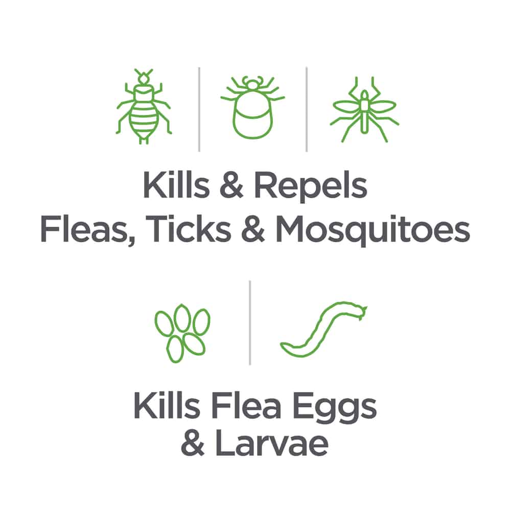 - Kills & Repels Fleas, Ticks, Flea Eggs & Larvae, Repels Mosquitoes
