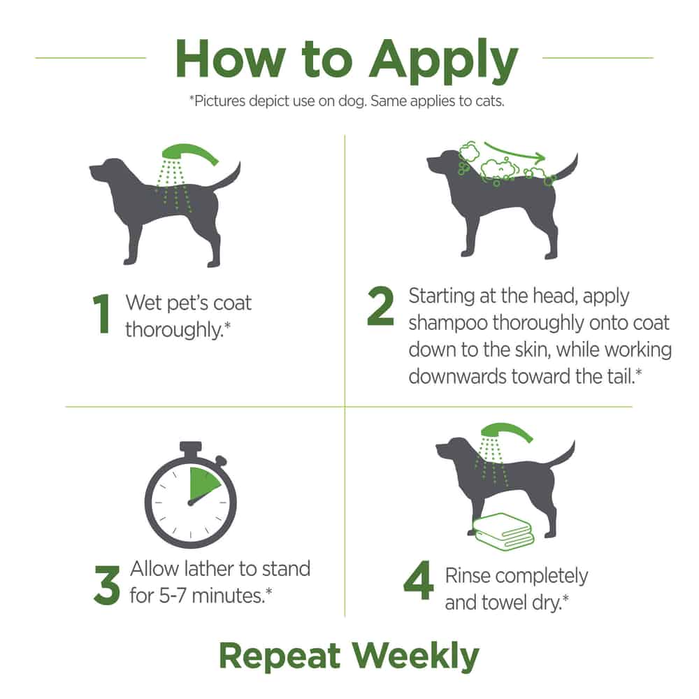 - For Dogs & Cats 12 weeks of age or older. Apply once per week for maximum effectiveness. Avoid bathing or swimming for 24 hours after application. Sensitivities may occur after using any product. If pet is sensitive to product, bathe with mild, grease-cutting detergent & water to remove product.