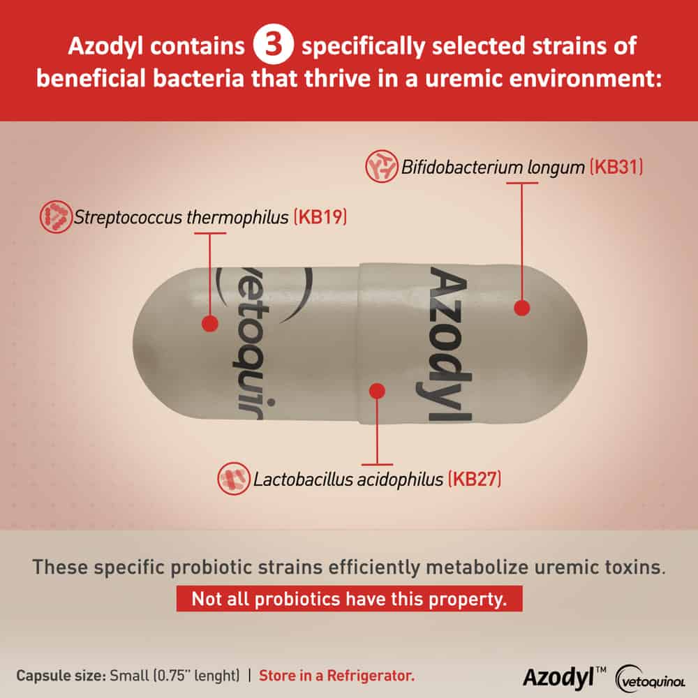 • Azodyl is a new, breakthrough bacterial product for the reduction of azotemia in dogs and cats.