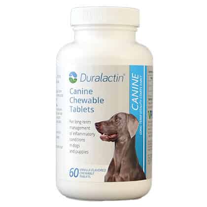 • Duralactin Canine is available as vanilla flavored chewable tablets.