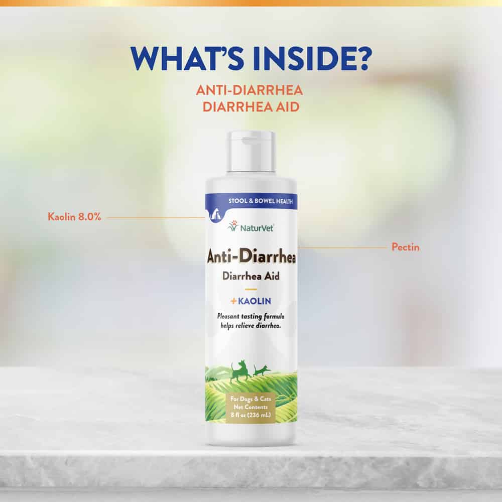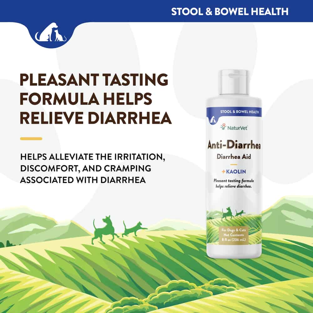 NaturVet Anti-Diarrhea is a pleasant tasting liquid suspension for use as an aid for simple diarrhea.