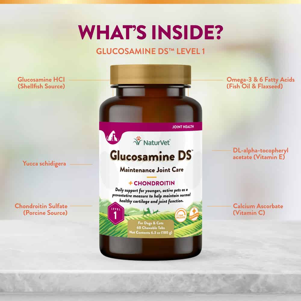 NaturVet Glucosamine DS Level 1 Maintenance Joint Care Supplement for Dogs and Cats -Dosage: