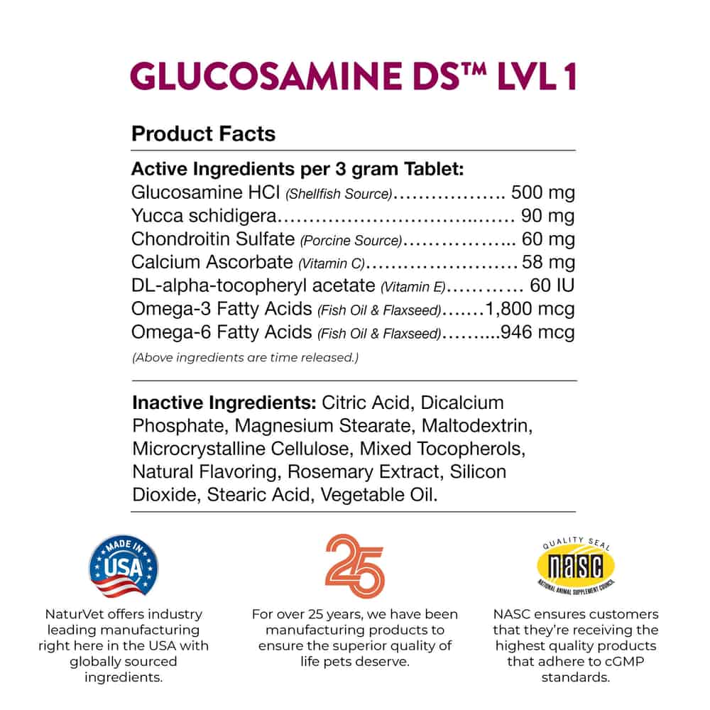 NaturVet Glucosamine DS Plus Level 2 Moderate Joint Care Support Supplement for Dogs and Cats Ingredients: