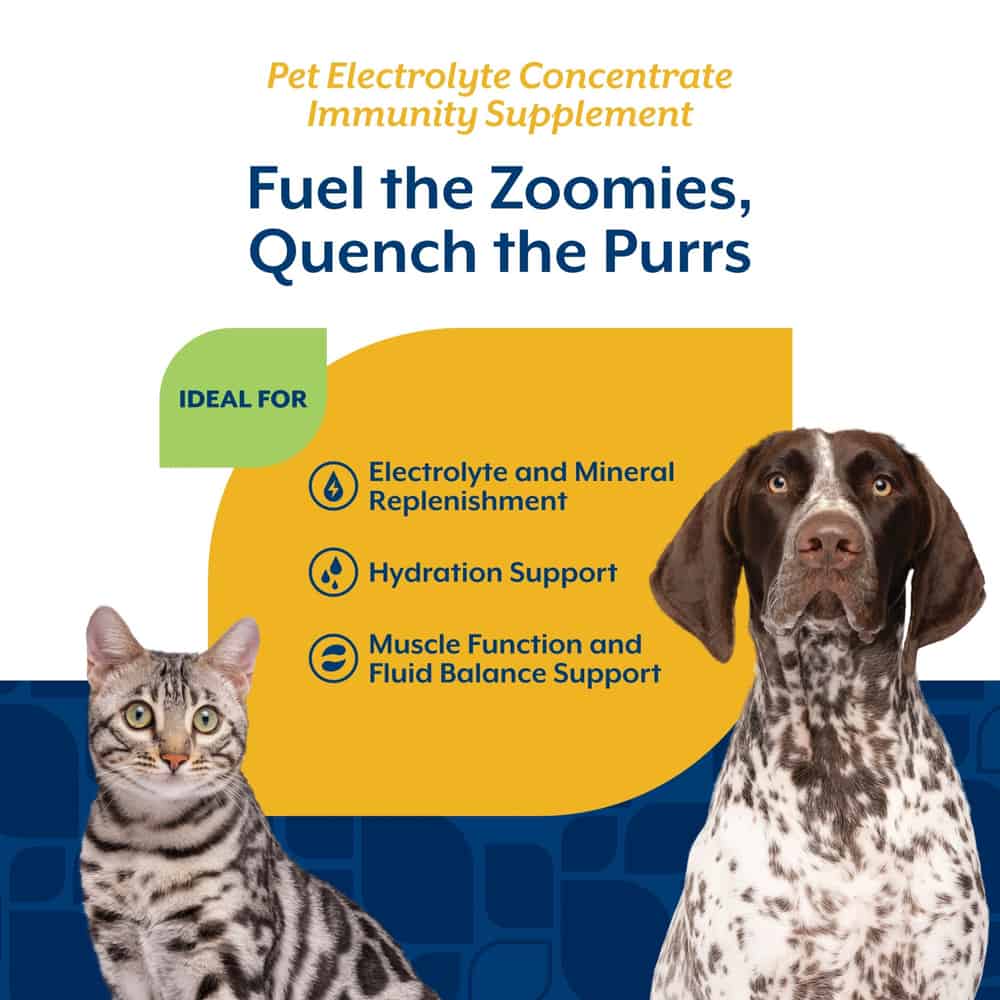 NaturVet Pet Electrolyte Liquid Concentrate helps support proper fluid balance, replenishes electrolytes, and maintains hydration.