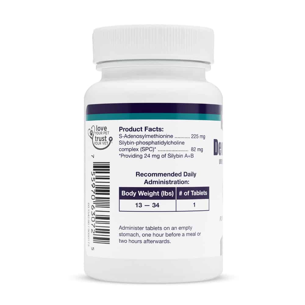 Denamarin liver supplement for dogs and cats is a patented nutritional supplement for veterinary use in dogs and cats. Denamarin combines a pure and stabilized S-Adenosylmethionine with Silybin to provide a multi-faceted approach to liver support, bile flow, and cell repair.