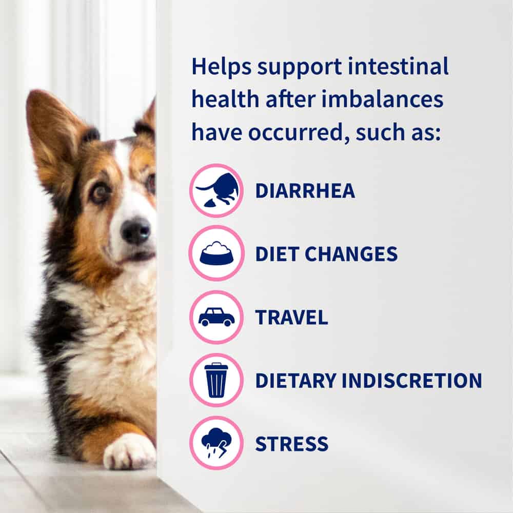 - A Healthy Gut Supports Overall Health - Probiotics help support intestinal health after imbalances, such as diet changes, food sensitivities, dietary indiscretions, or stress from travel or kenneling.
