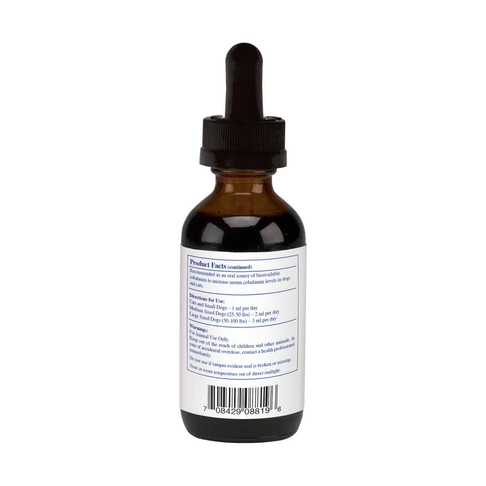 This liquid solution is specially crafted by a veterinarian and contains a man-made form of vitamin B12 called cyanocobalamin. It helps encourage cell reproduction, protein synthesis and the formation of blood. It comes in a convenient liquid form for easy administration and is paw-fectly suitable for canine companions and feline friends alike, so all your pets can get a boost of vitamin B12!