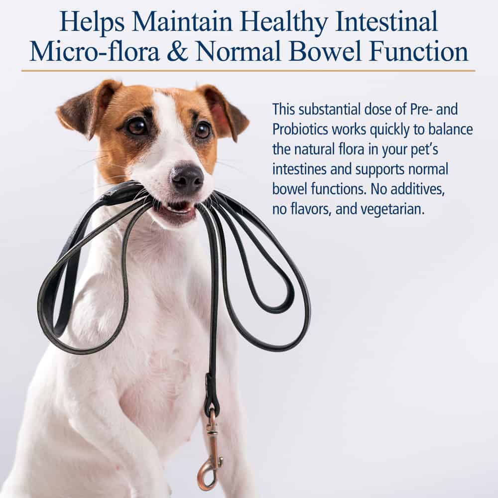 - Works quickly to balance the natural flora in your pet’s intestines and supports normal bowel functions.