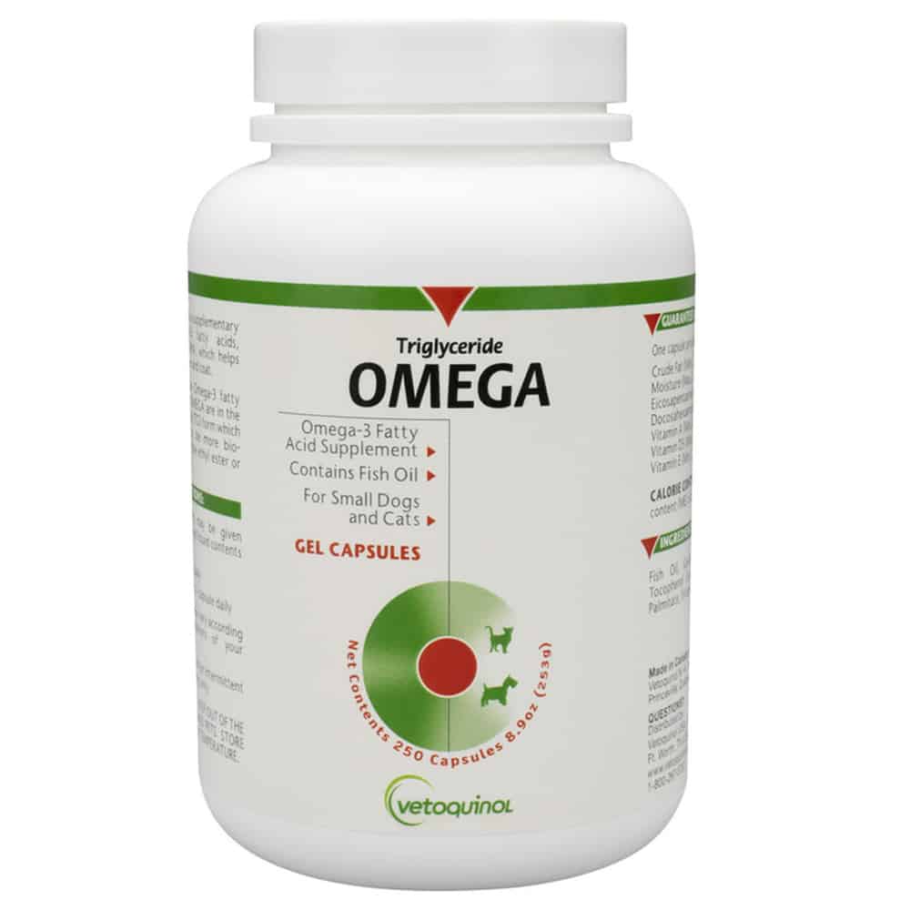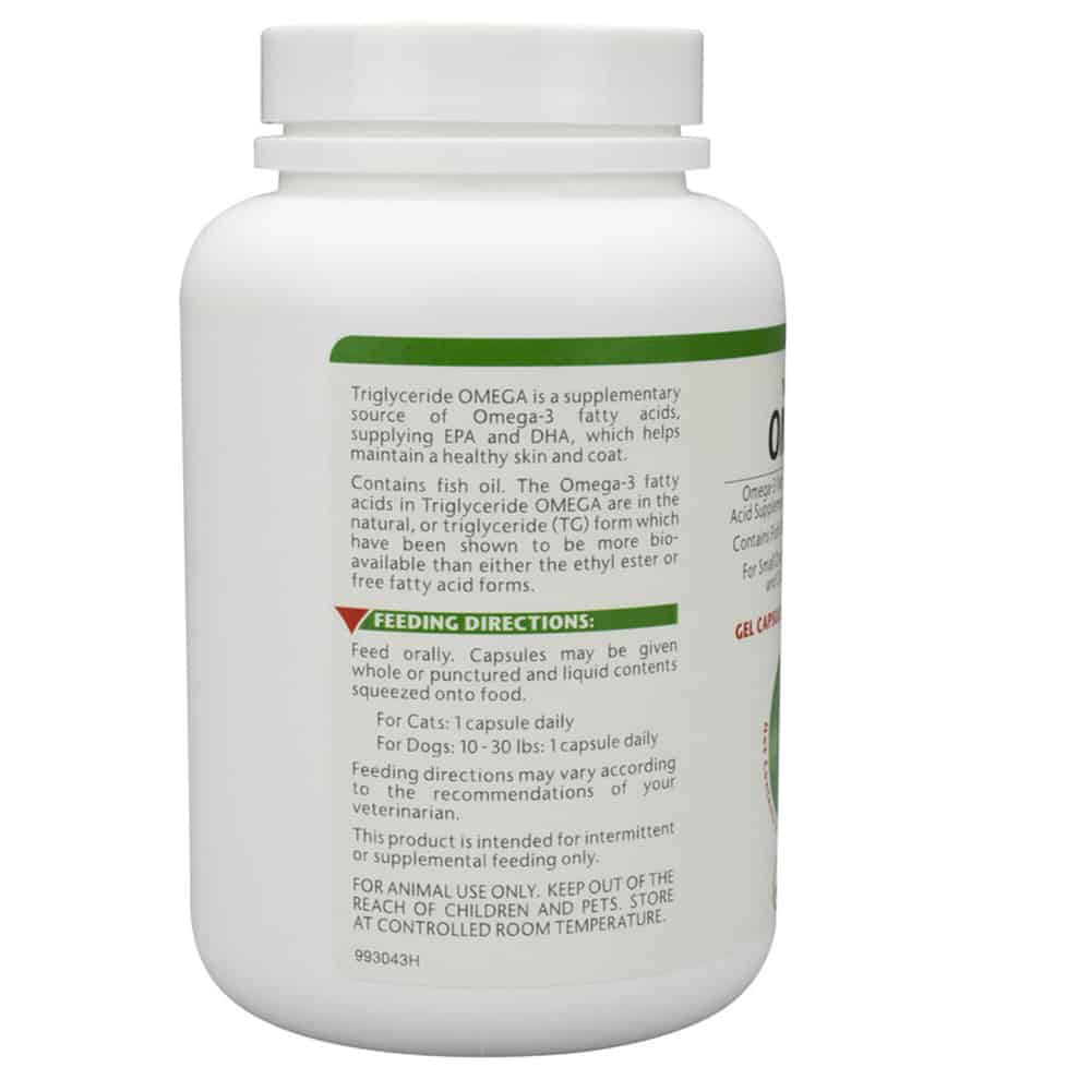 Triglyceride Omega for dogs and cats supplies EPA and DHA omega-3 fatty acids, which helps maintain a healthy skin and coat. Omega-3 fatty acids are also used to support kidney and heart function and may also support joint health.