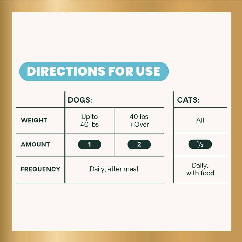 For pet use only. Keep out of the reach of children and pets. In case of accidental overdose, contact a health professional immediately.