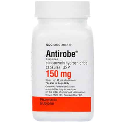 Antirobe (clindamycin) is used to treat soft tissue, dental, and bone infections caused by susceptible strains of bacteria. Antirobe requires a prescription from your veterinarian, and is sold per capsule.