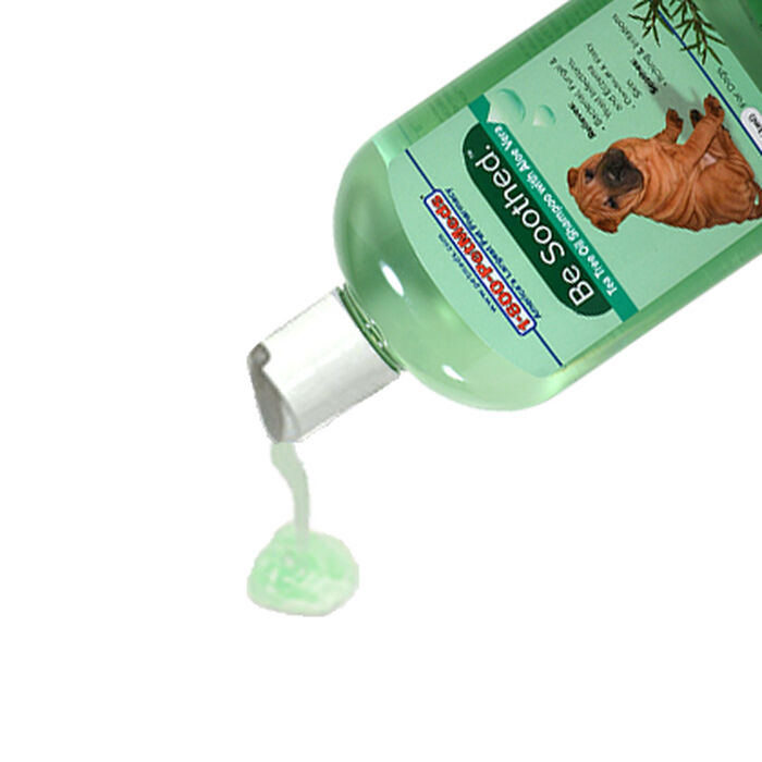 1-800-PetMeds Be Soothed Shampoo is a dog shampoo made with tea tree oil and aloe vera. Be Soothed Shampoo relieves bacterial, fungal, and yeast infections on the skin. It is an ideal shampoo for all dogs and puppies over 8 weeks of age, and is especially helpful in killing bacteria associated with scratches, surface wounds, and hot spots. To help skin irritations between baths, use Be Soothed Spray.