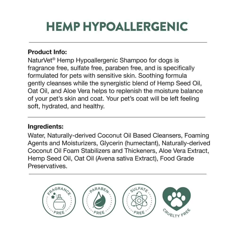 NaturVet Hemp Hypoallergenic Shampoo with Oat and Aloe for Dogs Ingredients: