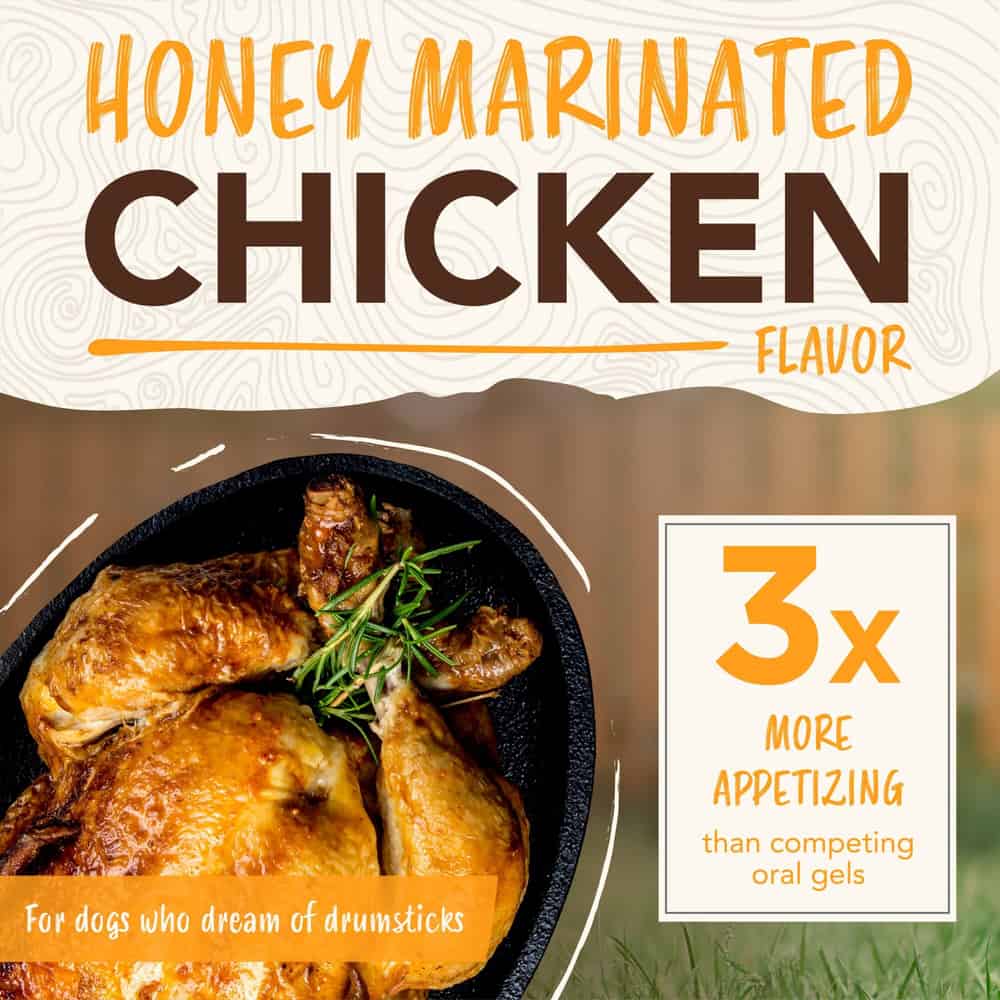 - Flavors Dogs Love - Honey Marinated Chicken Flavor is 3x more appetizing to dogs than competing oral care gels