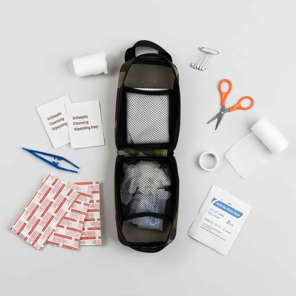 | Antiseptic wipes, triple antibiotic ointment, sterile dressing and non-stick gauze bandages |