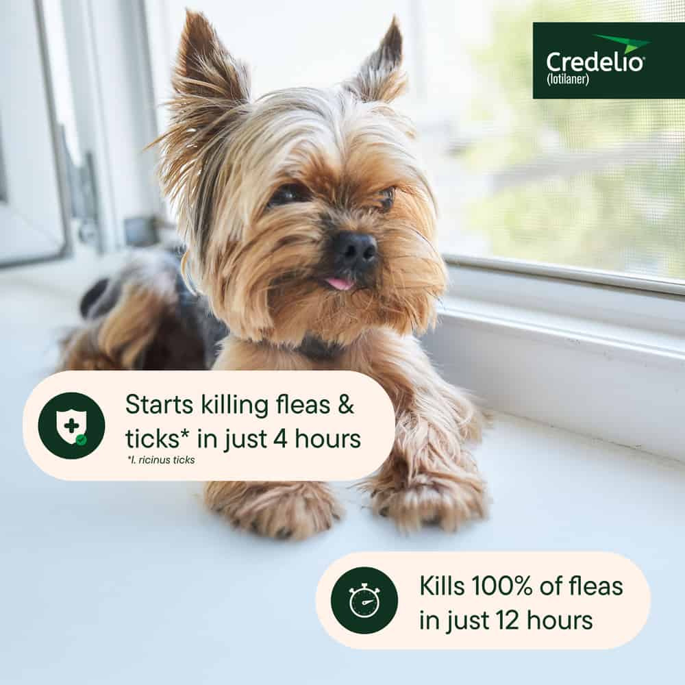 Credelio is available for dogs as small as 4.4 lbs. Talk with your veterinarian about which dose is right for your pups.