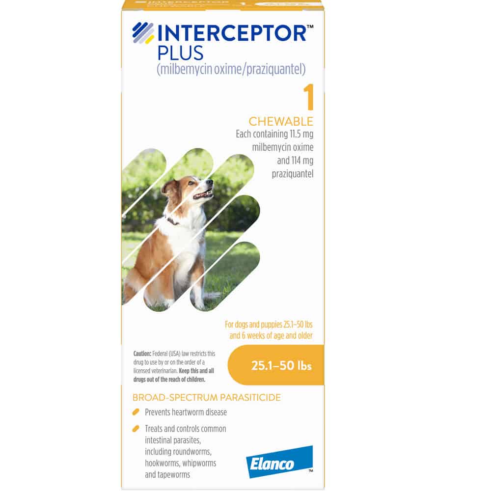 Interceptor Plus for Dogs 25.1-50 lbs (Yellow):