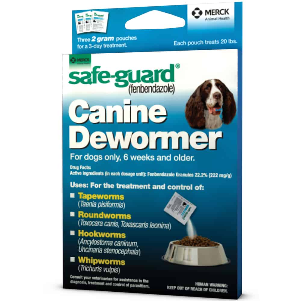 Safe-Guard Canine Dewormer is for the treatment and control of tapeworms, roundworms, hookworms, and whipworms in dogs and weaned puppies over 6 weeks of age. It's easy to administer; just mix with your dog's food. It is an ideal complement to monthly heartworm prevention products, which may not protect against all four major types of intestinal worms. Safe-Guard Canine Dewormer is safe to use in pregnant dogs.