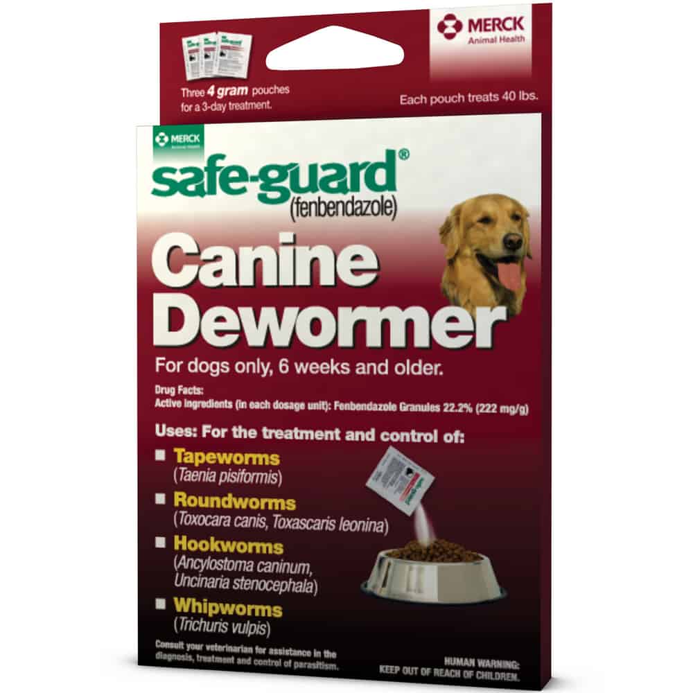 Safe-Guard Canine Dewormer is for the treatment and control of tapeworms, roundworms, hookworms, and whipworms in dogs and weaned puppies over 6 weeks of age. It's easy to administer; just mix with your dog's food. It is an ideal complement to monthly heartworm prevention products, which may not protect against all four major types of intestinal worms. Safe-Guard Canine Dewormer is safe to use in pregnant dogs.