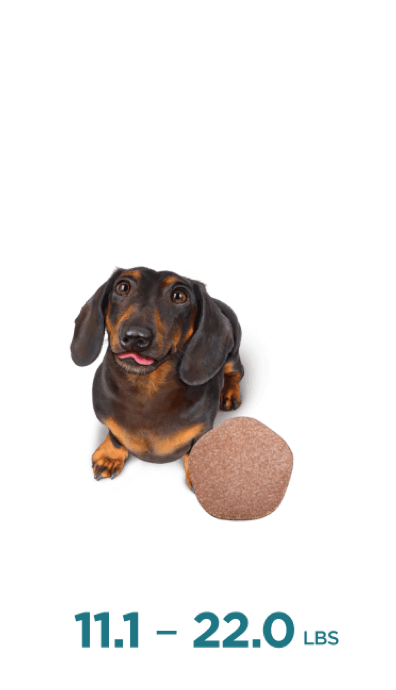 11.1-22.0 lbs Administer one chewable tablet once a month (Caramel Box)
