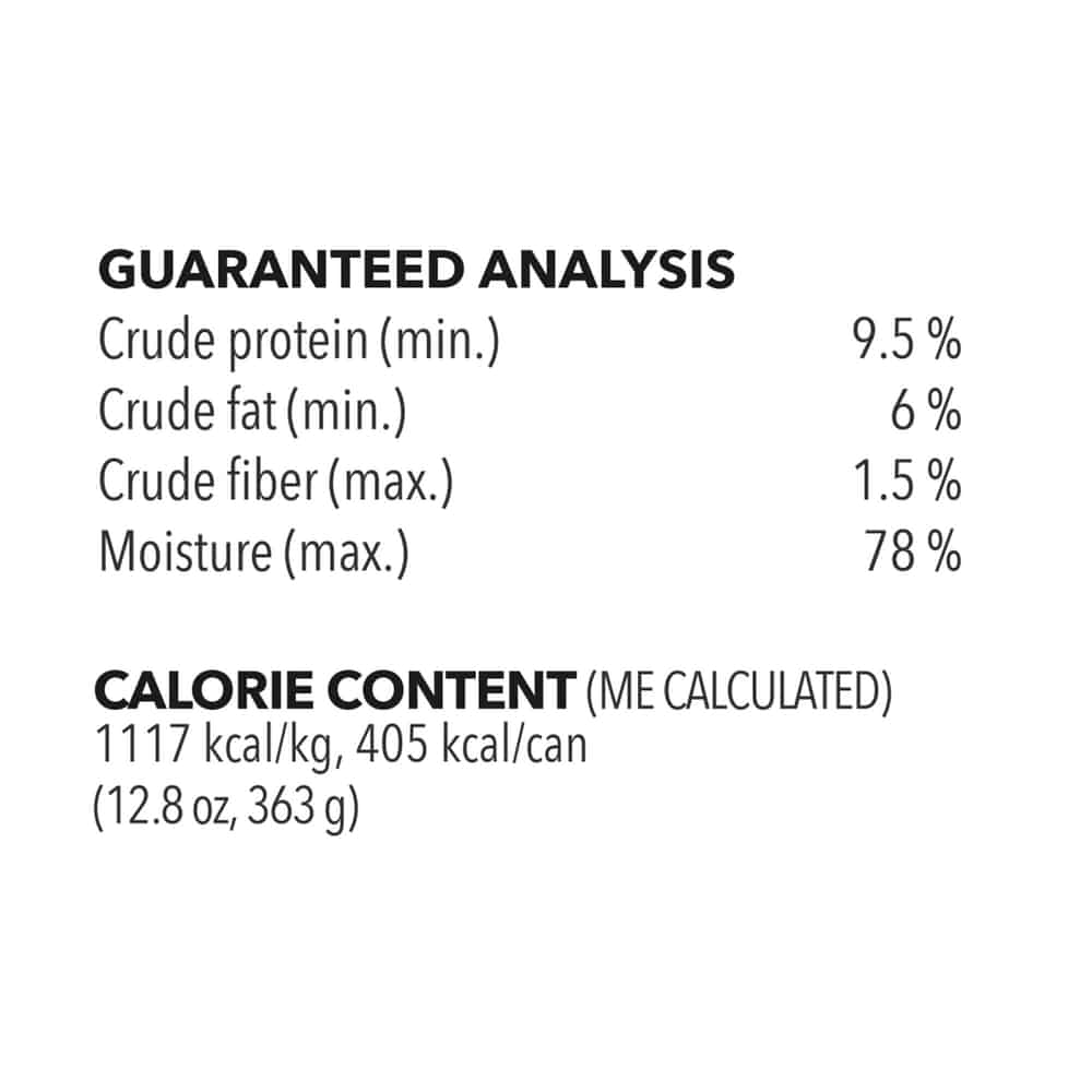 | (ME CALCULATED) 1117 kcal/kg, 405 kcal/can (12.8 oz, 363 g) |