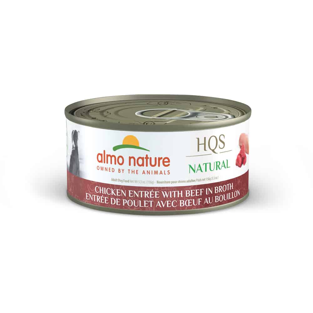 What is Almo Nature HQS Natural Chicken Entrée with Beef in Broth Wet Dog Food?