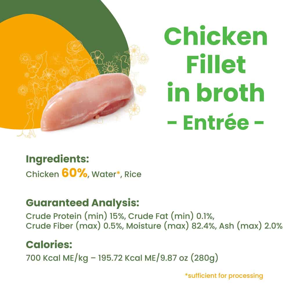 Is your dog a picky eater? Try slightly warming this chicken fillet entree in broth. The enhanced aroma can entice even the most discerning diners, making this wholesome meal irresistible.