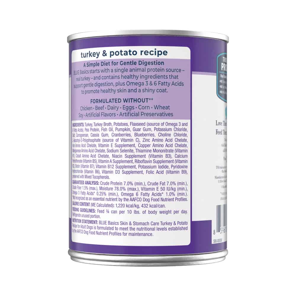 Blue Buffalo Basics Skin & Stomach Care Grain-Free Turkey and Potato Recipe Adult Wet Dog Food Ingredients: